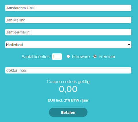 - Vul bij de Coupon Code in: dokter_hoe