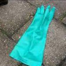 Op een zorgafdeling kun je als bescherming tegen blootstelling aan gevaarlijke stoffen nitril wegwerphandschoenen gebruiken. Zie de foto. Bij de keuze van het soort wegwerphandschoen is de eigenschap van de gevaarlijke stof bepalend.