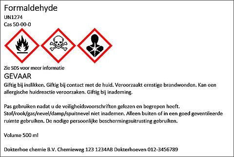 Een voorbeeld van een GHS-etiket staat hieronder.