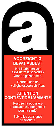 Asbest is eenstof die sterk, slijtvast, isolerend, brandwerend maar ook kankerverwekkend is. Het werd tot de jaren tachtig veel gebruikt. Materialen waarin asbest is verwerkt komen nog steeds voor. Onderstaand gevarensticker kun je tegenkomen op apparaten of materialen die asbest bevatten.