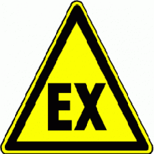 Een explosieve atmosfeer kan ontstaan als er brandbare gassen, damp, nevel of stof zijn vermengd met omgevingslucht (zuurstof). Een explosiegevaarlijk gebied wordt aangeduid met dit symbool (ATEX 137-richtlijn). Apparatuur in dit gebied moet explosieveilig zijn (ATEX 95-richtlijn).